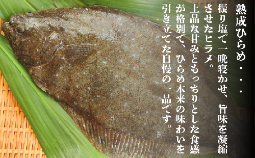 振り塩で一晩寝かせ、旨味を凝縮させたヒラメは、上品な甘みともっちりとした食感が格別。特別な席や大切な方への贈り物にも最適です。