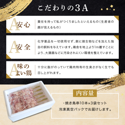 - 遠州地鶏一黒シャモ使用!こだわりの焼き鳥串10本×3袋セット総量 約900g 地鶏 軍鶏 しゃも 冷凍 送料無料 もも むね 生肉 美味しい ヘルシー お取り寄せ 贅沢 記念日 お中元 お歳暮 自宅用 家庭用 国産