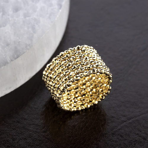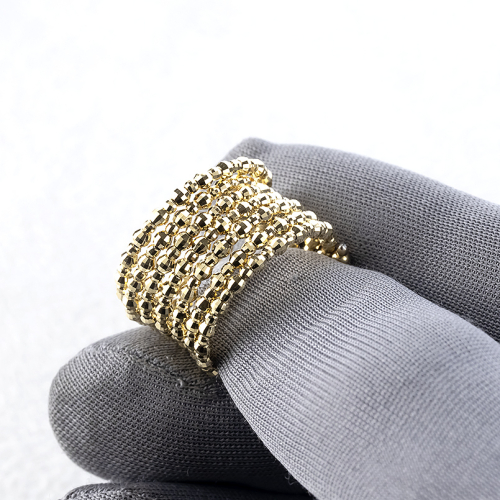1.5ミリ・2ミリのミラーボールを組み合わせた、光を美しく反射する豪華な7連リング