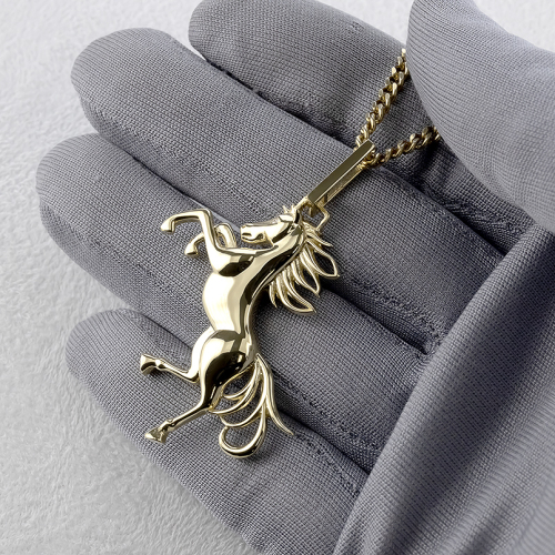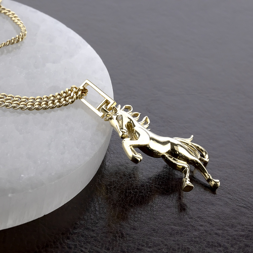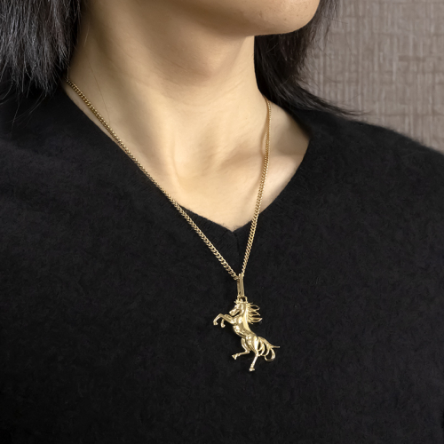 鬣(たてがみ)をなびかせ、躍動感あふれる跳ね馬を立体的に細部まで精巧に再現したペンダントトップ