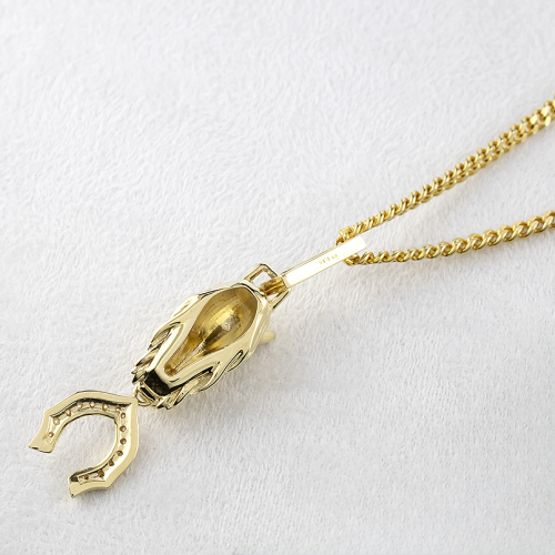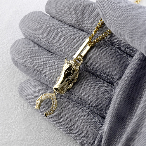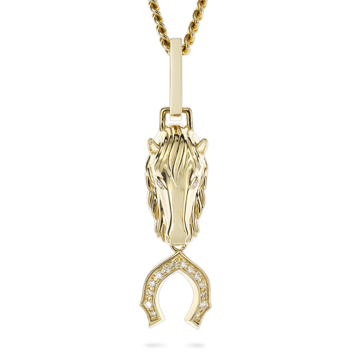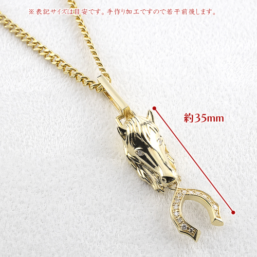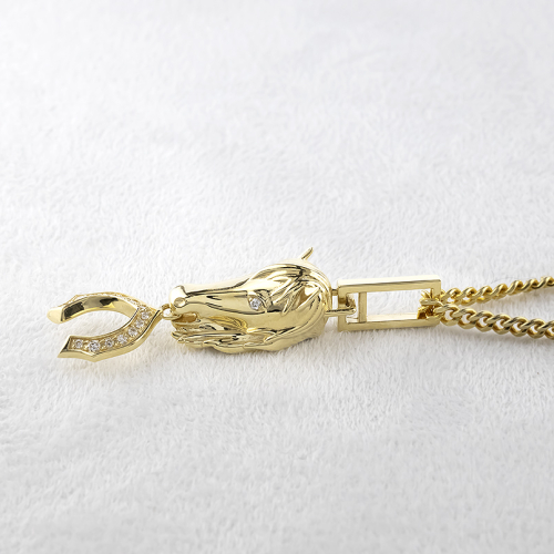 優雅で美しく知性的な表情の馬にダイヤモンドを留めた馬蹄がゴージャスなペンダントトップ