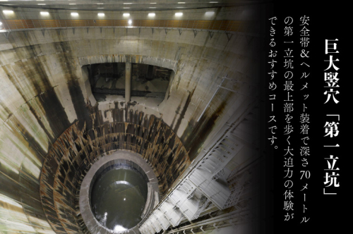 これまでの公開されている見学のメインである防災地下神殿や第1立坑に、新たに第3立坑(地下トンネル)を見学箇所に追加した「アドベンチャー体験コース」にあなたをご招待。