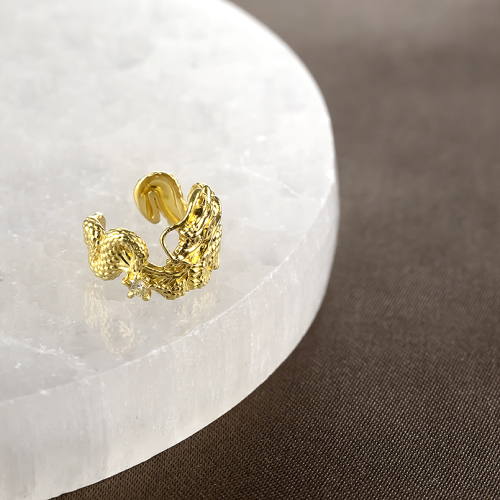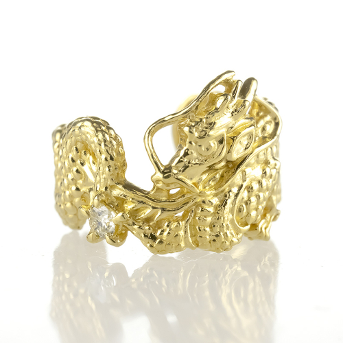 純金の輝きが眩しい龍のイヤーカフ