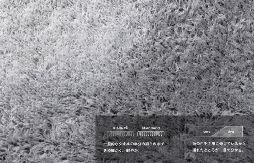 一般的なタオルに使われる半分の細さの糸を使用しており、乾きやすい薄さと吸水性を備えているので、デイリーユースにもぴったりです。