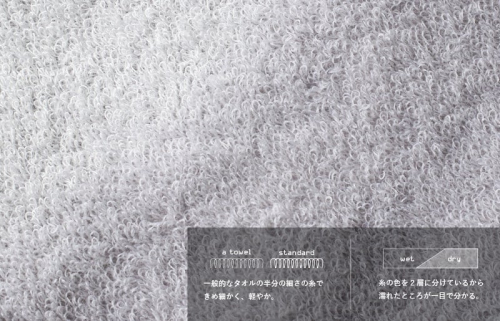 一般的なタオルに使われる半分の細さの糸を使用しており、乾きやすい薄さと吸水性を備えているので、デイリーユースにもぴったりです。