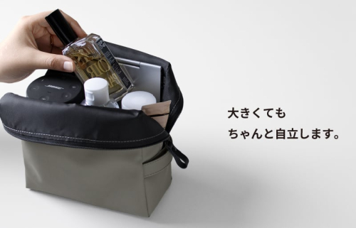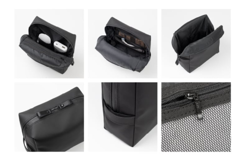 耐水性が高い生地とファスナーテープからの水の侵入をブロックするYKKの止水ファスナーを採用しているので急な雨や洗面台でのうっかり事故にも安心です。