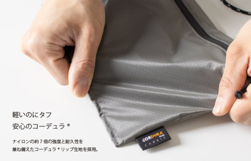 【スピード発送(7日以内)のお礼品のため、不在日は承れません。】 カードと小銭がそのまま入れられる、ウォレットレスサコッシュ。 極薄の生地を使用し極限まで軽量化された約30gのサコッシュ。 急な雨でも安心な耐水仕様。耐水性が高い生地に加えファスナーからの水の侵入をブロックする止水ファスナーを採用しています。 ナイロン100%(コーデュラ)