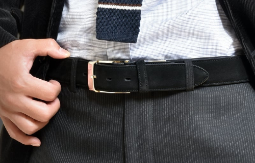 メンズ雑貨ブランドTAVARATの本革ベルト。革の表面を起毛させた国産のヌバックレザーを表面に、裏面にも国産のスムースレザーを使用した本革ベルトです。