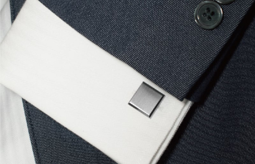 メンズ雑貨ブランドTAVARATのカフスボタン。4つの角を落とし、表面にはサテーナ加工。シンプルな中にアクセントのある上品なデザインに仕上げています。