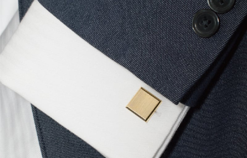 メンズ雑貨ブランドTAVARATのカフスボタン。4つの角を落とし、表面にはサテーナ加工。シンプルな中にアクセントのある上品なデザインに仕上げています。