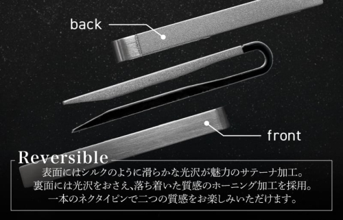 こちらは日本の熟練職人が手掛ける、表裏で異なる表情を持つリバーシブル仕様のネクタイピン「VERSO」です。