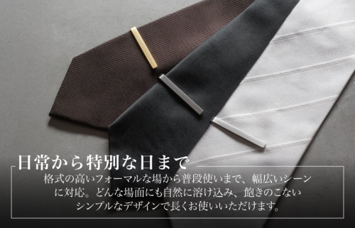 こちらは日本の熟練職人が手掛ける、表裏で異なる表情を持つリバーシブル仕様のネクタイピン「VERSO」です。 真鍮の塊から切削加工で削り出し、接着や溶接を使わない一体型で仕上げることで、耐久性を高めています。 表面にはシルクのような光沢を放つサテーナ加工を施し、上品な輝きを演出。 シンプルなデザインでありながら、どの角度から見ても美しい仕上がりです。 素材:真鍮100%