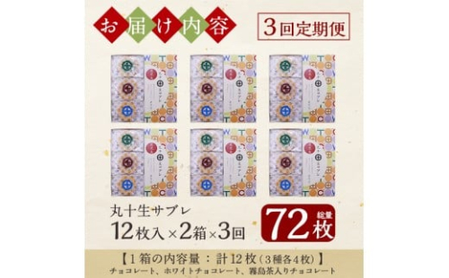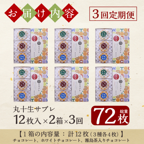 C-086-C 【3回定期便】丸十生サブレ詰め合わせ(12枚入×2箱×3回 計72枚)【徳重製菓とらや】霧島市 生サブレ サブレ しっとり なめらか マイルド お菓子 焼菓子 おやつ お土産 贈り物 手土産 チョコレート ホワイトチョコレート 霧島茶チョコレート