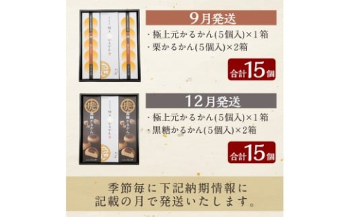 K-628 《定期便:全4回》極上元かるかん(5個×1箱)と季節のかるかん(5個×2箱)詰め合わせセット【徳重製菓とらや】霧島市 国産 かるかん 軽羹 饅頭 まんじゅう 銘菓 郷土菓子 生菓子 お菓子 和菓子 スイーツ 定期便 セット