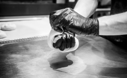 とろけるチーズを挟んだベーグルのホットサンドも当店人気商品の一つ。
