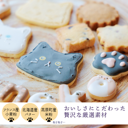 ねこ好きさんにうれしい、可愛らしい見た目だけでなく味にもこだわり、フランス産の小麦粉や北海道産のバター、高原町産米粉などを使用し、香り高く、サクッとホロっと優しい口当たりです。