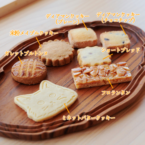 - ・ねこのおやつ時間:7種類16枚(バタークッキー、米粉メープルクッキー、ディアマンクッキー、ショートブレッド、フロランタン、ガレットブルトンヌ)