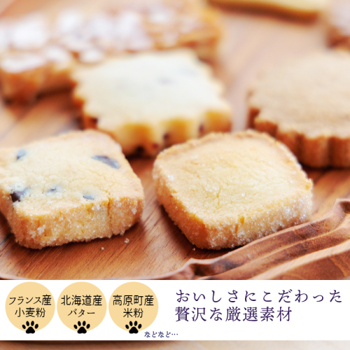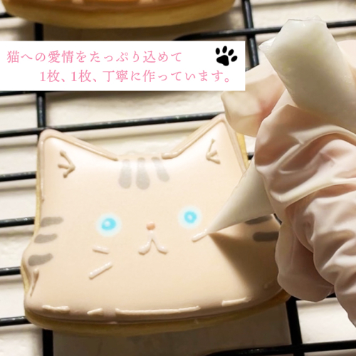 ねこ好きさんにうれしい、可愛らしい見た目だけでなく味にもこだわり、フランス産の小麦粉や北海道産のバター、高原町産米粉などを使用し、香り高く、サクッとホロっと優しい口当たりです。