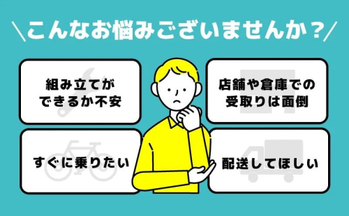 ・流通形態の都合上、点検等は付帯されておりません。また、お届け後の修理等についてはお近くの自転車取扱店またはご自身でお願いしております。