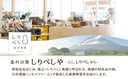 羊蹄山麓の恵みを受けた農作物や、日本海の海産物など、20市町村それぞれの環境や気候を活かした名産品のほか、自社農園(ニセコファーム)で栽培した新鮮野菜を全国の皆さまにお届けしています。