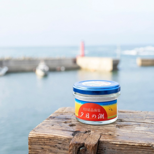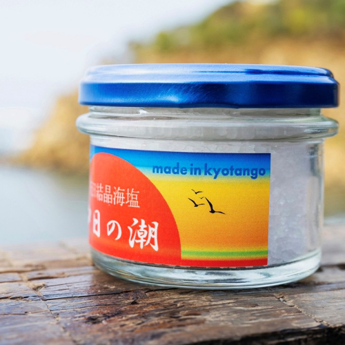 京都・京丹後市網野町、夕日ヶ浦の澄みきった海。その美しい海水を汲み上げ、温室内で太陽と風の力のみを使って、ゆっくりと時間をかけて濃縮・乾燥させた、自然仕立ての天日海塩「夕日の潮(ゆうひのしお)」。