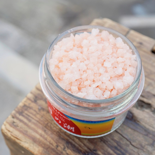 結晶の粒が非常に大きく、特に飾り塩や仕上げ塩としておすすめです。粒が大きいため、そのままではつけ塩には少し強めですが、軽く砕けばふり塩としても活用できます。その存在感ある美しい結晶は、見た目でも塩の個性を楽しんでいただける特別な一品です。