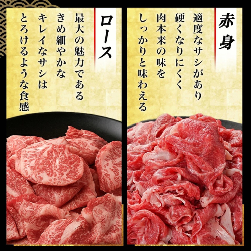 【宮崎牛】はロースと赤身の2種類をご用意しました!スライス切り落としはすき焼きやしゃぶしゃぶ用だけでなく、ビーフシチューやカレー、丼物や炒め物などの日常使いでも活躍します♪