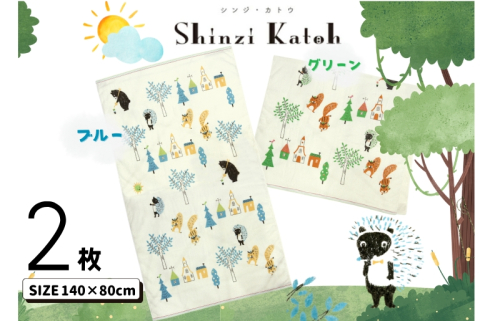 Shinzi Katohデザイン「ピグミーフォレスト」大判バスタオル2枚セットです。
