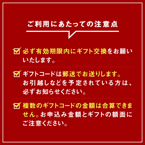 ・別々に寄附をしたギフトコードの金額は合算できません。お申込み金額とギフトの額面にご注意ください。