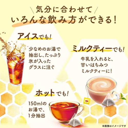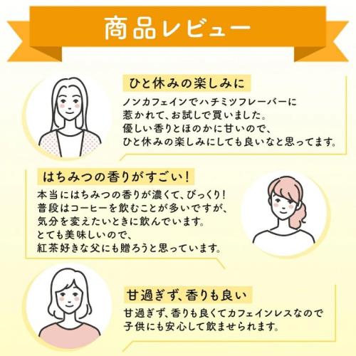 はちみつの甘い香りと味わいが、口の中でふわっと広がる、カフェインレスのはちみつ紅茶。