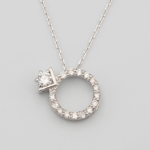 【キーワード】PT900/PT850 プラチナ ジュエリー ギフト プレゼント レディース 可愛らしい おしゃれ 記念日 贈り物 指輪型 リングモチーフ ダイヤモンド ダイア ネックレス ダイヤネックレス ダイヤモンドネックレス