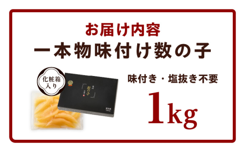 【一本物】数の子 1kg 化粧箱入り【味付け かずのこ おつまみ ご飯のお供 酒の肴 高級 本チャン ギフト 贈答用】 kgp0107