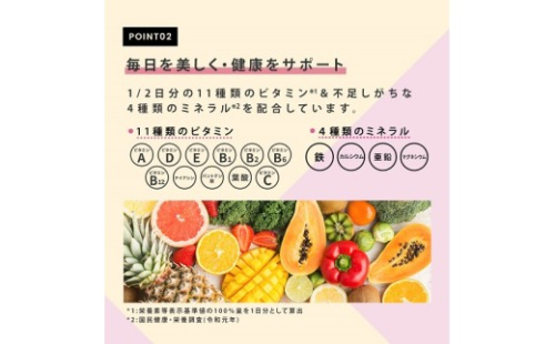 ●不足しがちな4種類のミネラルを配合(カルシウム、マグネシウム、鉄、亜鉛)