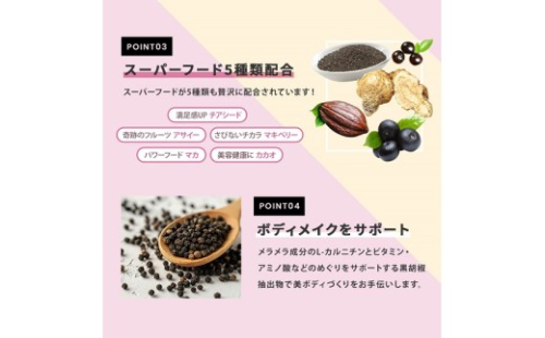 ●スーパーフード5種類(マカ・カカオ・チアシード・アサイー・マキベリー)配合