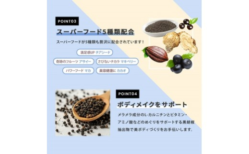 ●スーパーフード5種類(マカ・カカオ・チアシード・アサイー・マキベリー)配合