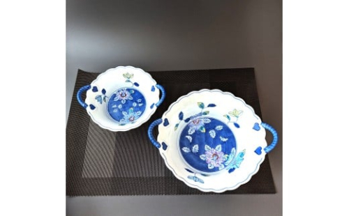 絵柄は色鮮やかな有田焼の美しさを感じられる器で、多様な使い方が人気の、鉄仙花バスケット大小のセットでご提供いたします。