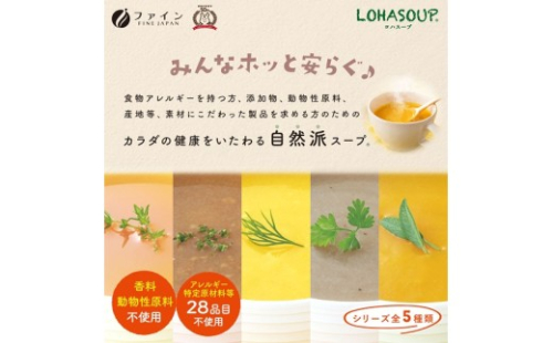 食物アレルギーを持つ方、添加物、動物性原料、産地等、素材にこだわった製品を求める方のための、 カラダの健康をいたわる自然派スープ。