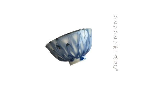 青い花が咲き誇るような流れる釉薬の模様が特徴で、和にも洋にも調和する現代的な美しさを持っています。 さらに、使い込むほどに貫入(かんにゅう)が入る風合いの変化も、この器の大きな魅力です。 時間と共にあなただけの表情を見せてくれる、愛着の湧く一品へ。 やさしい手触りと軽やかな口当たりで、毎日の食卓に心地よい彩りを添えてくれます。 ご自分用にはもちろん、贈り物としてもおすすめの夫婦茶碗です。 窯元:山忠オリジナル 提供:山忠