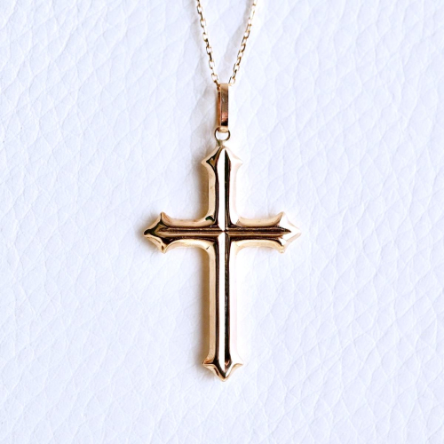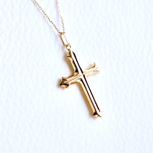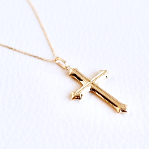 【商品詳細】 K18のクロスのペンダントネックレスです。 シンプルながらも立体感とあるデザインです。 クールな印象のクロスが軽やかにゆれて胸元をスタイリッシュに演出してくれます。 ネックレスには3cmの所にアジャスターかんが付いておりますので37cmと40cmの2種類の長さでお着けできます。 ケースに入れ、リボンをかけてお届けいたします。 【素材】 K18(18金) イエローゴールド