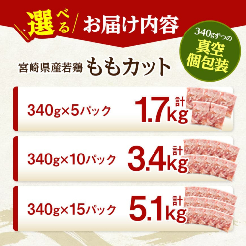 - ※グラムが選べる※宮崎県産若鶏 ももカット1.7kg~5.1kg 【 国産 九州産 鶏肉 肉 とり もも肉 モモ からあげ チキン南蛮 送料無料 】
