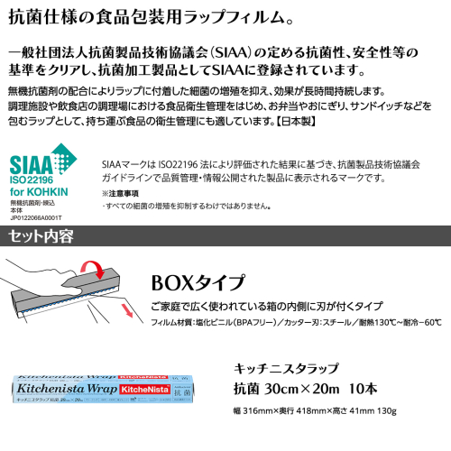 - 「抗菌仕様ラップ」SIAA登録製品 キッチニスタラップ 抗菌 30cm×20m 10本 ラップ 食品ラップ キッチン 台所用品 日用品 抗ウイルス 抗菌 キッチニスタ 消耗品 キッチン用品 [DO010ci]
