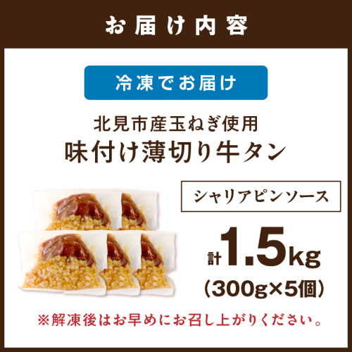 - 【予約:2025年12月から順次発送】北見市産玉ねぎ使用 味付け薄切り牛タン シャリアピンソース 300g×5個 ( 肉 牛肉 たまねぎ タマネギ 焼肉 )【224-0027】
