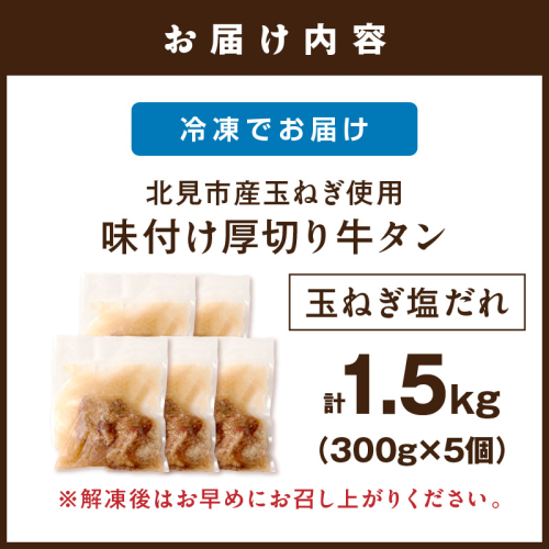 【予約:2025年12月から順次発送】北見市産玉ねぎ使用 味付け厚切り牛タン 玉ねぎ塩だれ 300g×5個 ( 肉 牛肉 たまねぎ タマネギ 焼肉 )【224-0029】