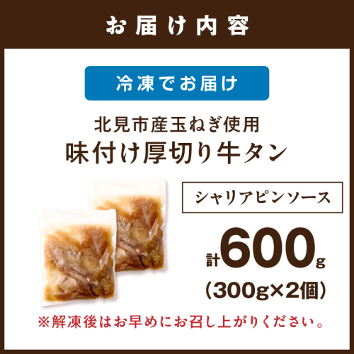 - 【予約:2025年12月から順次発送】北見市産玉ねぎ使用 味付け厚切り牛タン シャリアピンソース 300g×2個 ( 肉 牛肉 たまねぎ タマネギ 焼肉 )【224-0035】