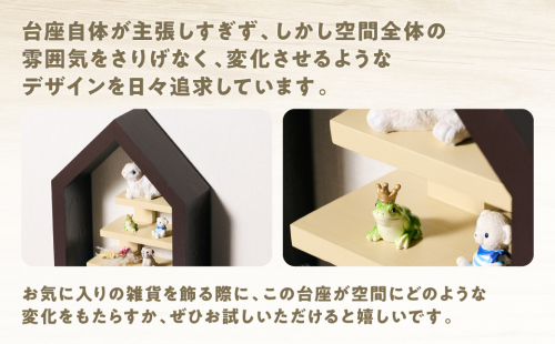 台座は、その上に飾る雑貨をより魅力的に引き立てるための脇役だと考えています。