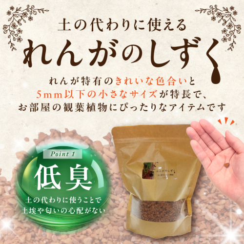 「れんがのしずく」は、れんが特有の色合いと5mm以下の小さなサイズが特長です。インテリアとしてお部屋の観葉植物にぴったりなアイテムです。
