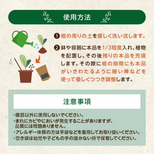※土の代わりに使用する際は、パッケージ記載の使用方法を参考に、適量をご使用ください。