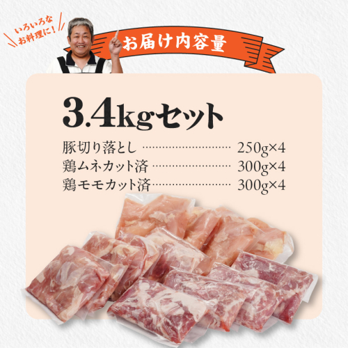 使いやすさ抜群!宮崎県産鶏肉(カット済)&豚肉切り落とし3.4kgセット≪みやこんじょ快速便≫_MJ-8427-R