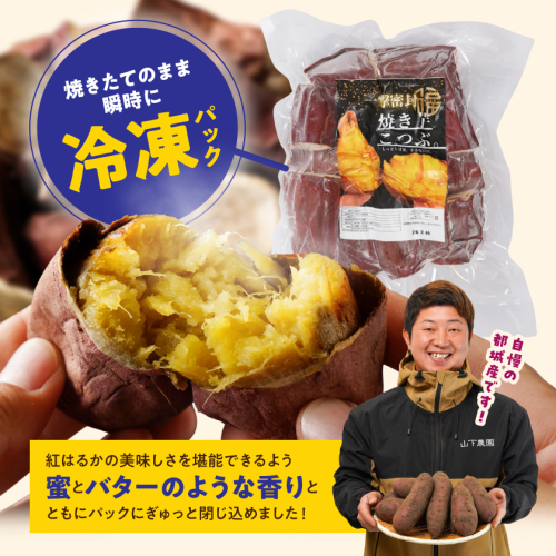 都城の火山灰土壌で育った紅はるかを、独自の高温ワンショット焼成で一気に焼き上げ、焼きたてのまま瞬時に冷凍パックにして蜜とバターのような香りを閉じ込めました。口に運ぶと、皮はほろりと崩れ、熱を帯びた蜜がとろり。思わず頬がゆるむ、一瞬で心奪われる体験をお届けします。