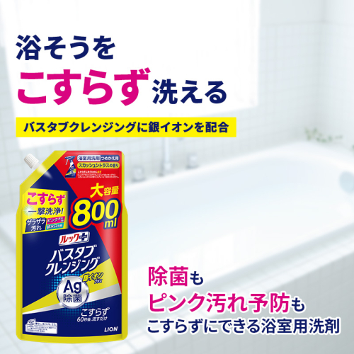 浴そうをこすらず洗えるバスタブクレンジングに銀イオンを配合。「除菌」と「ピンク汚れ予防」もこすらずにできる浴室用洗剤